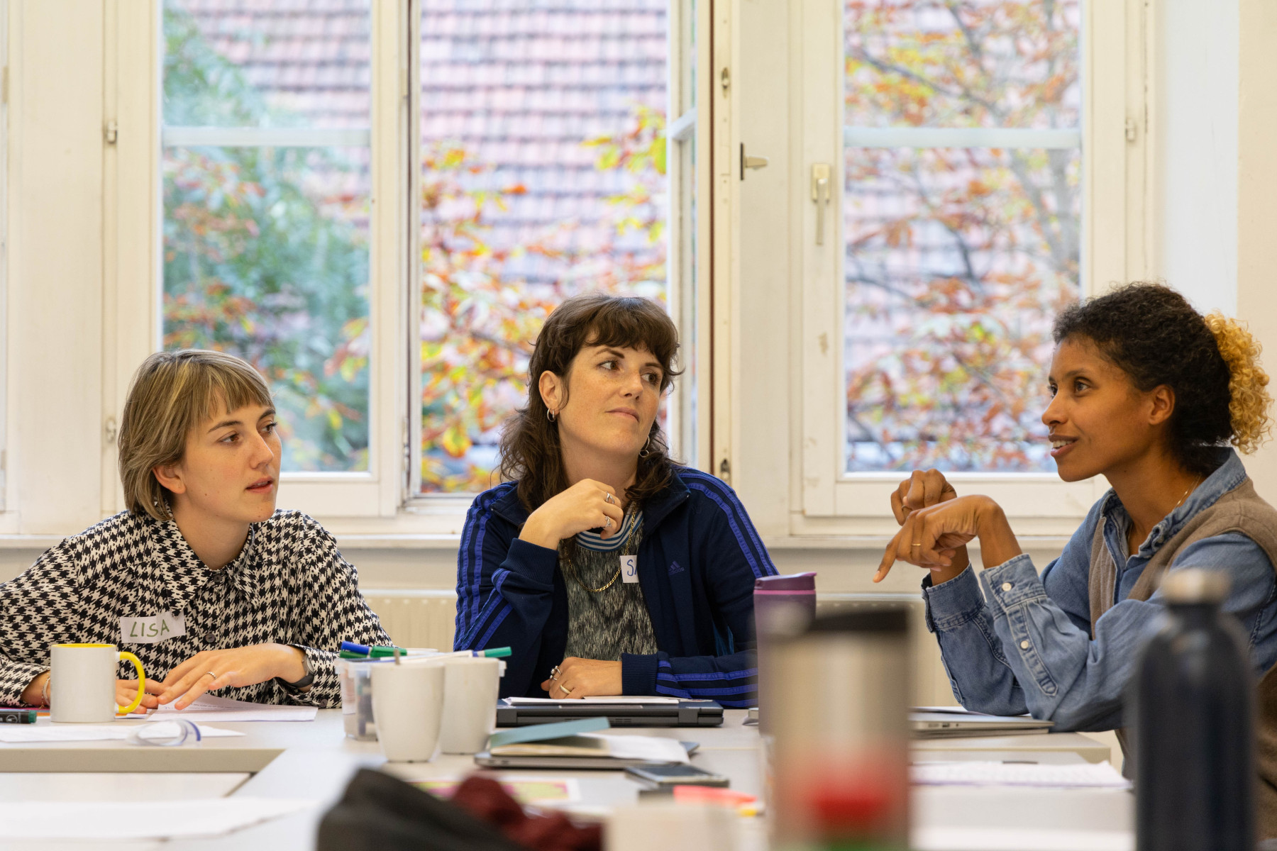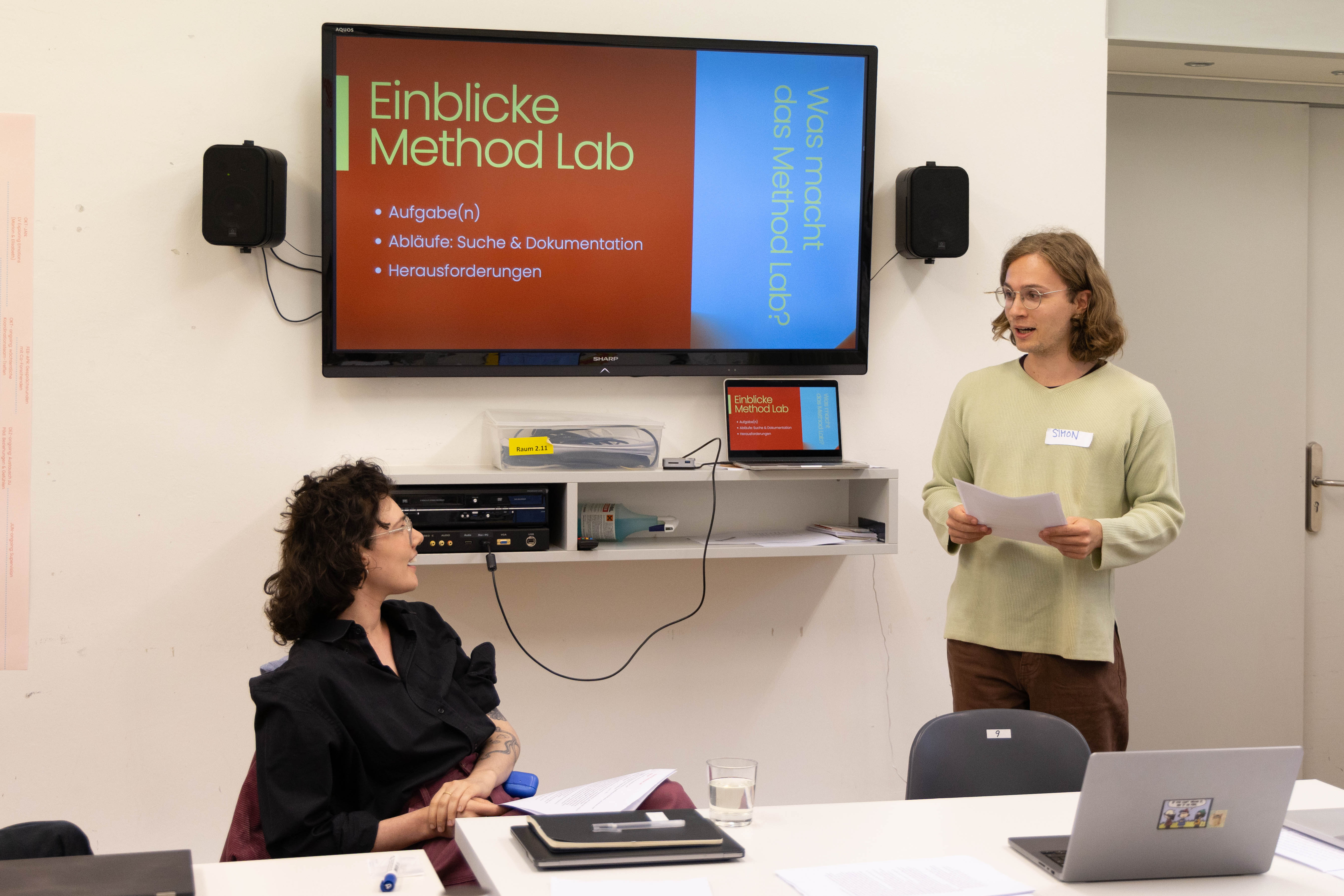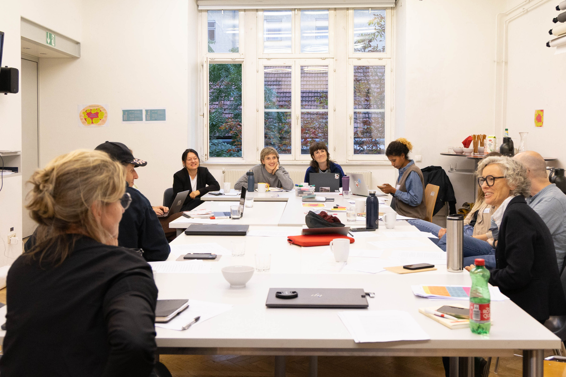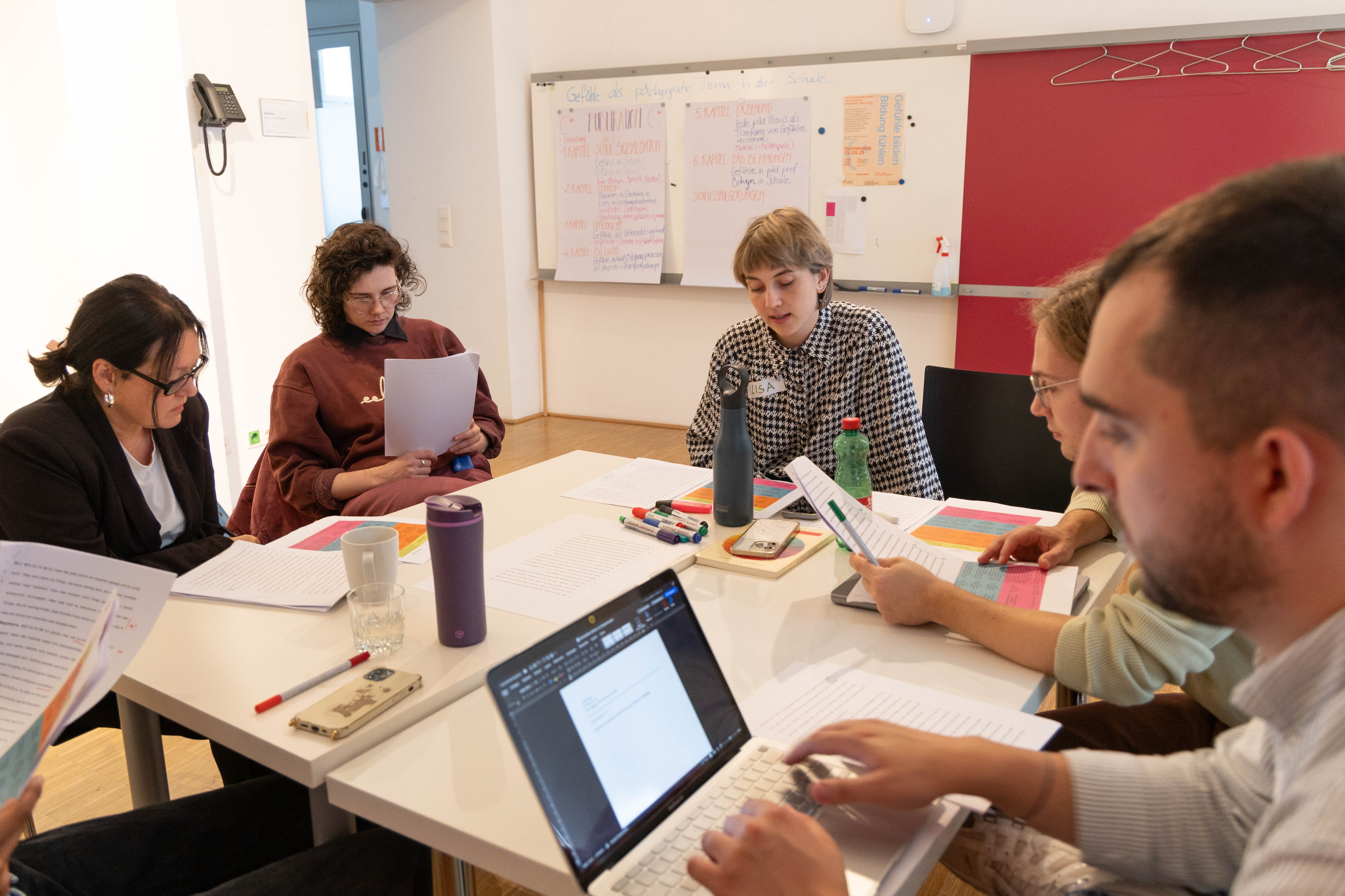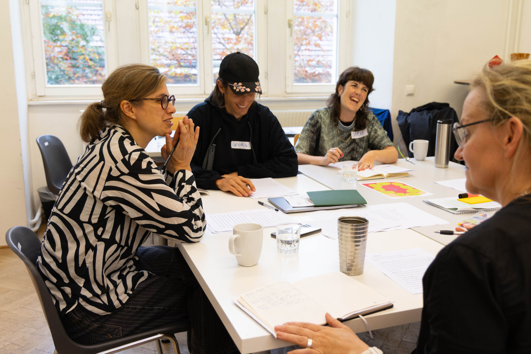 Der nächste Tag stand im Zeichen des Austausches über vergangene Prozesse in verschiedenen Arbeitsgruppen – auch in Hinblick auf die nächste Projektphasen. Einblicke ins Theory Lab, Method Lab und die Arbeit zu Gesprächsrunden mit Pädagog*innen zum Thema Schule und Gefühle wurden besprochen und die einzelnen Forschungsstudios hatten Zeit, nochmal zu vertiefen, wie sich ihr Vorhaben ins Forschungsprojekt einordnet.