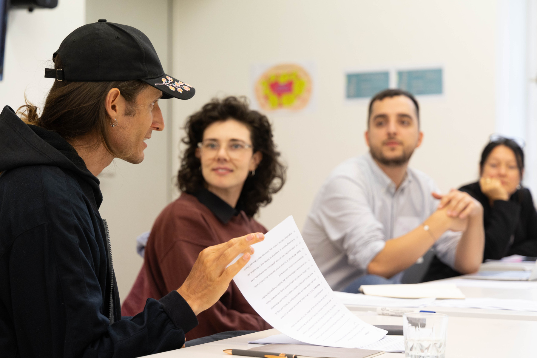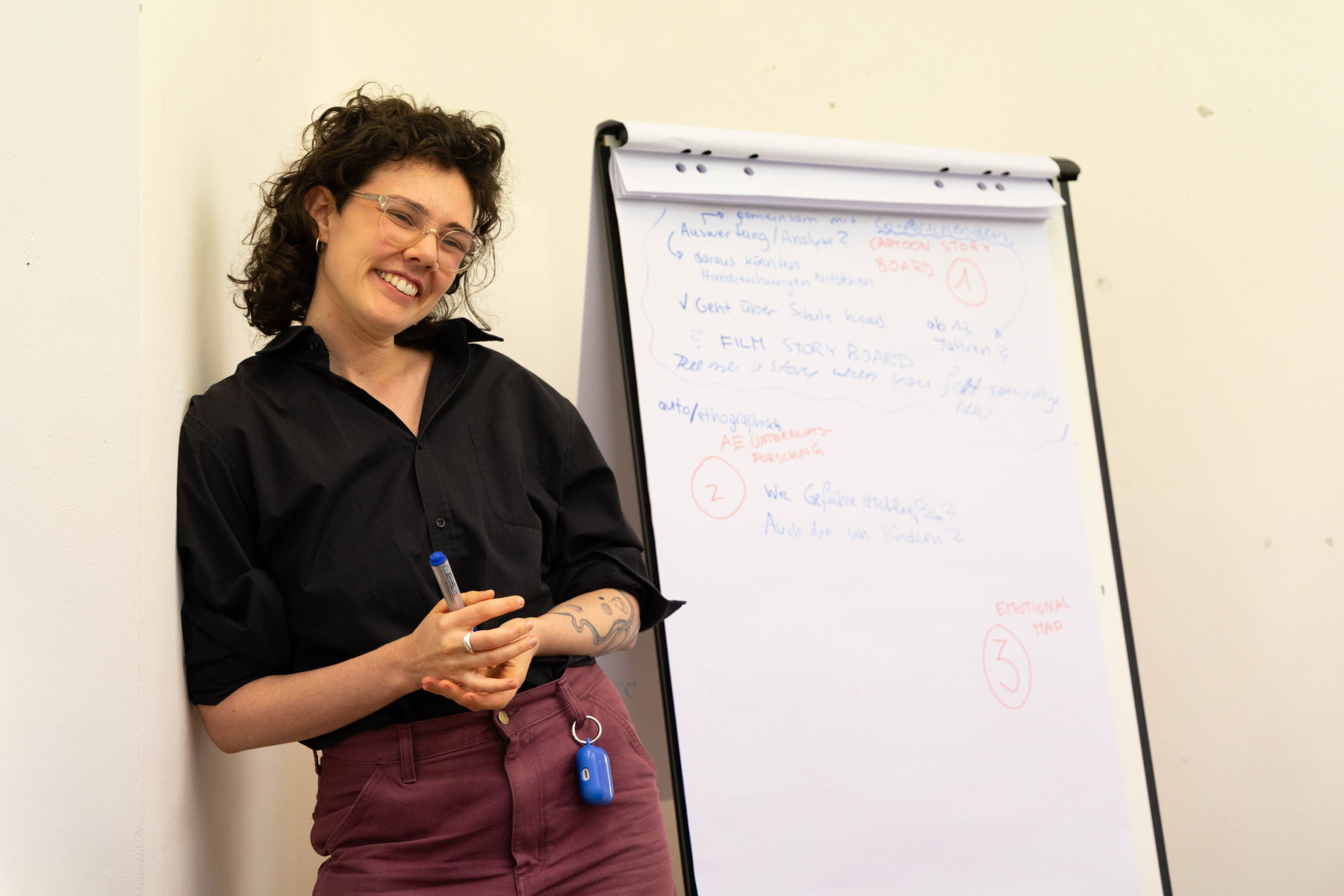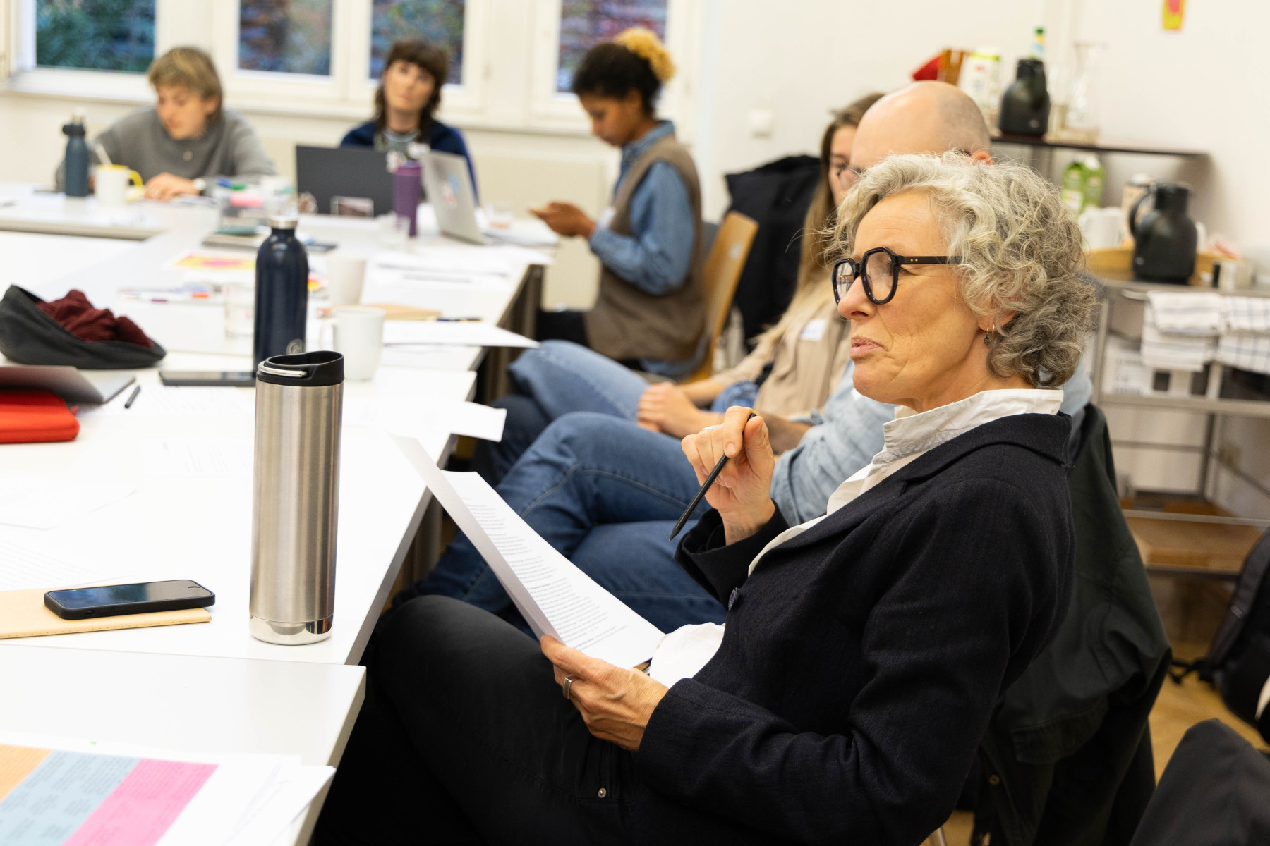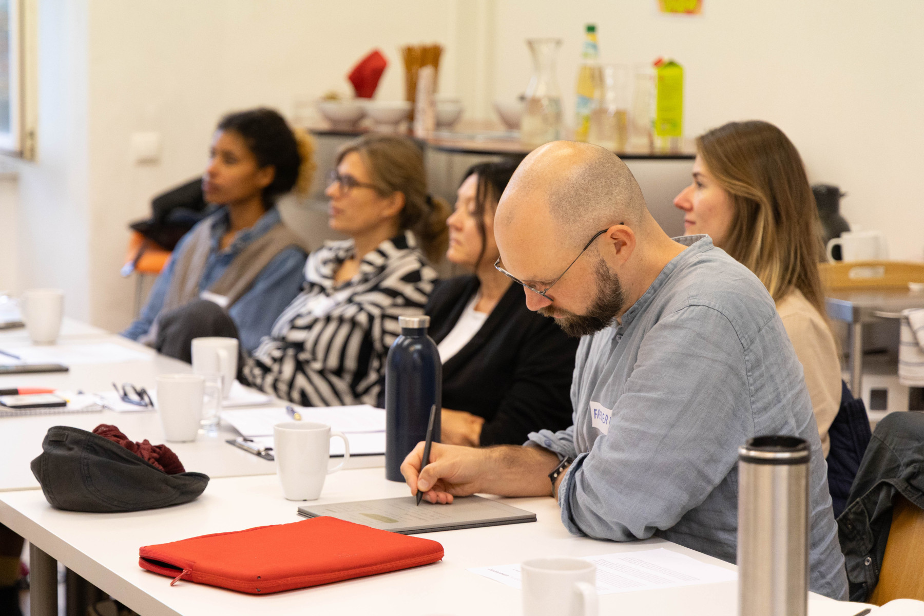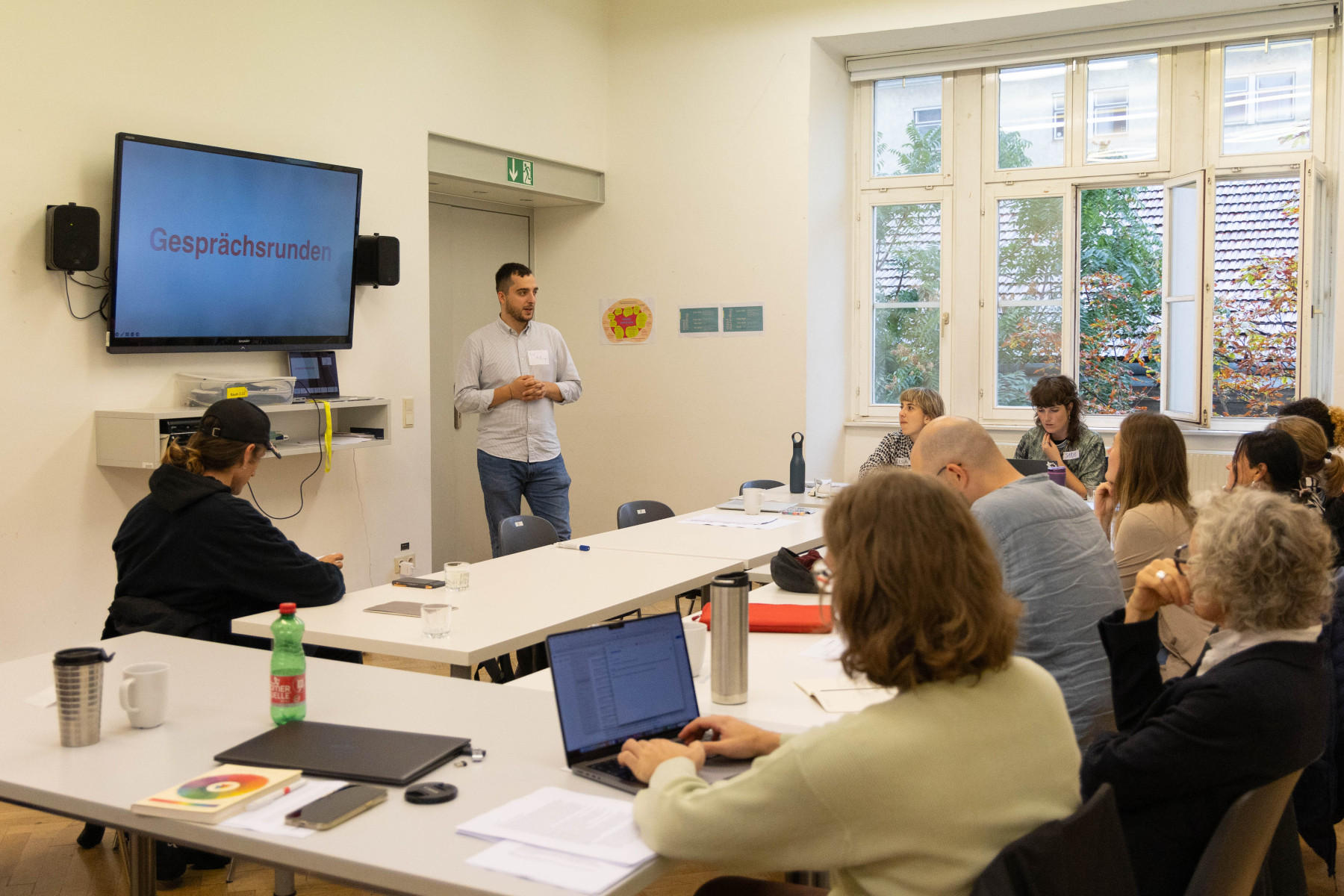 Der nächste Tag stand im Zeichen des Austausches über vergangene Prozesse in verschiedenen Arbeitsgruppen – auch in Hinblick auf die nächste Projektphasen. Einblicke ins Theory Lab, Method Lab und die Arbeit zu Gesprächsrunden mit Pädagog*innen zum Thema Schule und Gefühle wurden besprochen und die einzelnen Forschungsstudios hatten Zeit, nochmal zu vertiefen, wie sich ihr Vorhaben ins Forschungsprojekt einordnet.